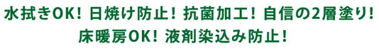 ◆耐久性に優れ、水分の苦手なフローリングも安心して水拭きができます。